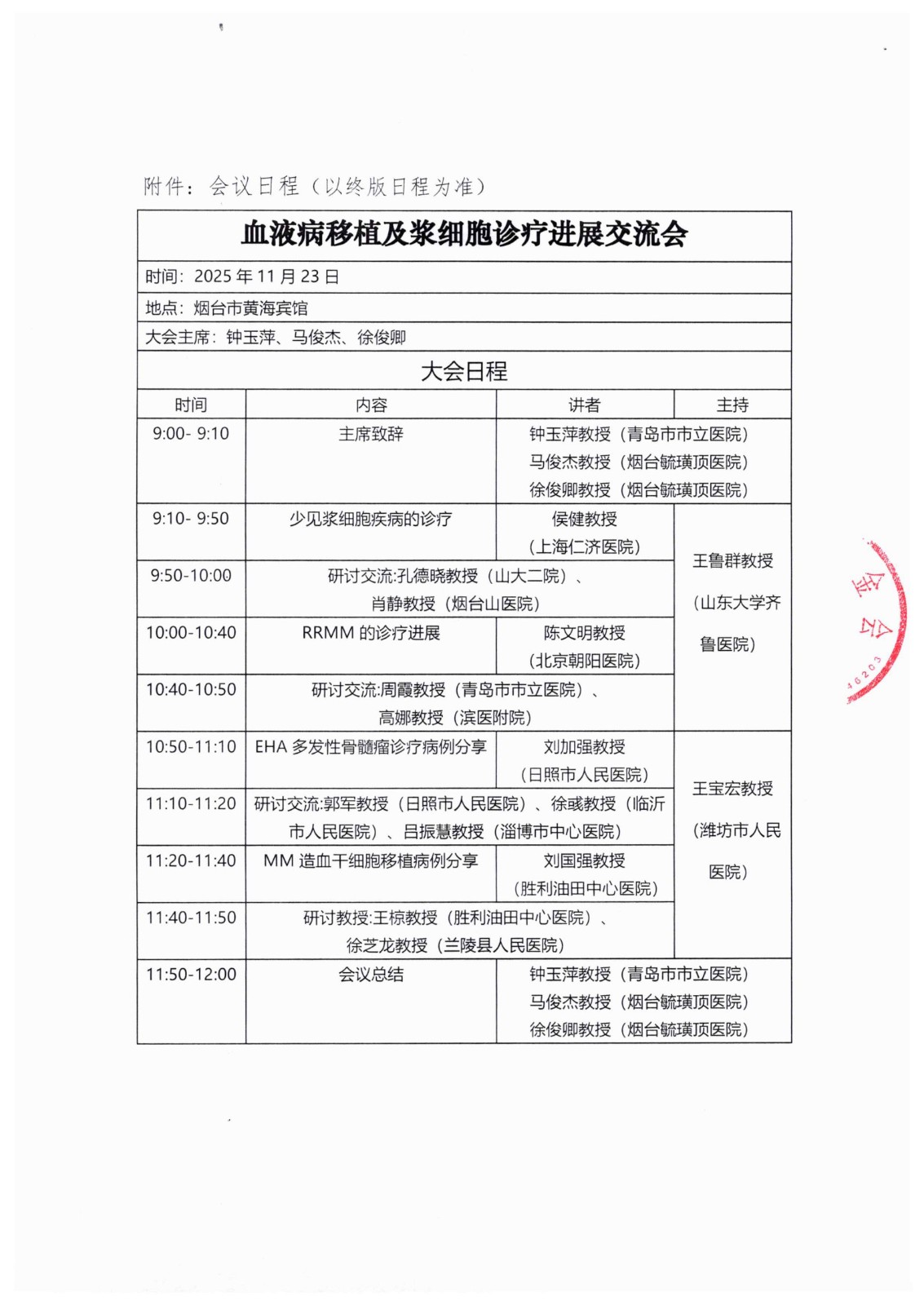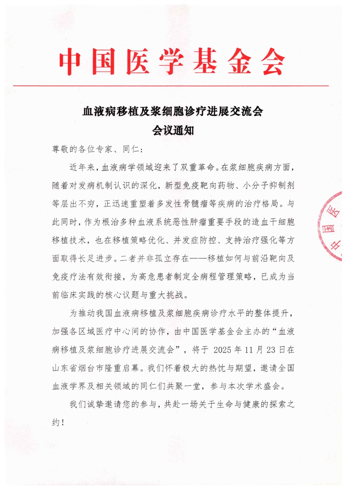 血液病移植及浆细胞诊疗进展交流会-会议通知