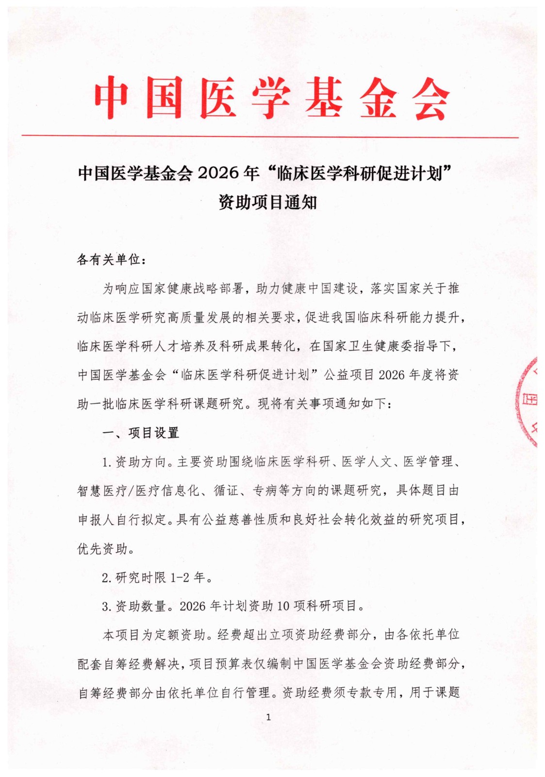 附件1-中国医学基金会“临床医学科研促进计划”资助项目申请书.docx